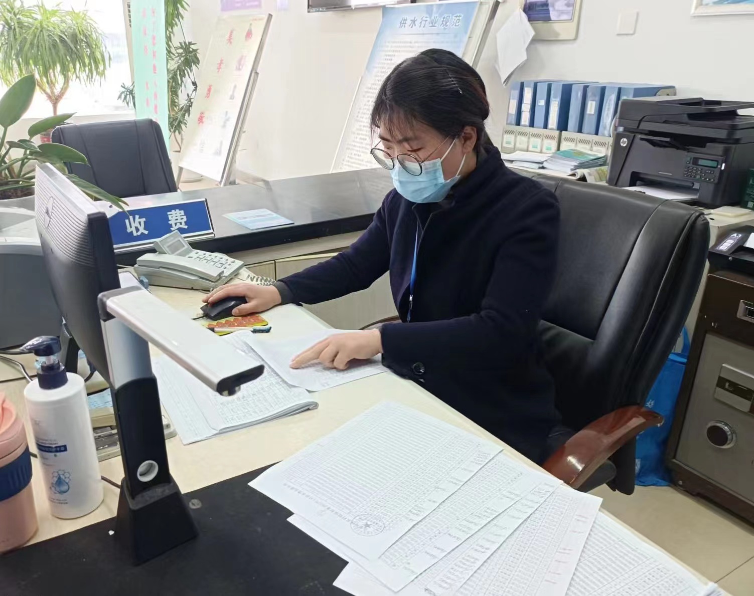 工作人員正在核對錄入符合減免政策的低收入戶信息