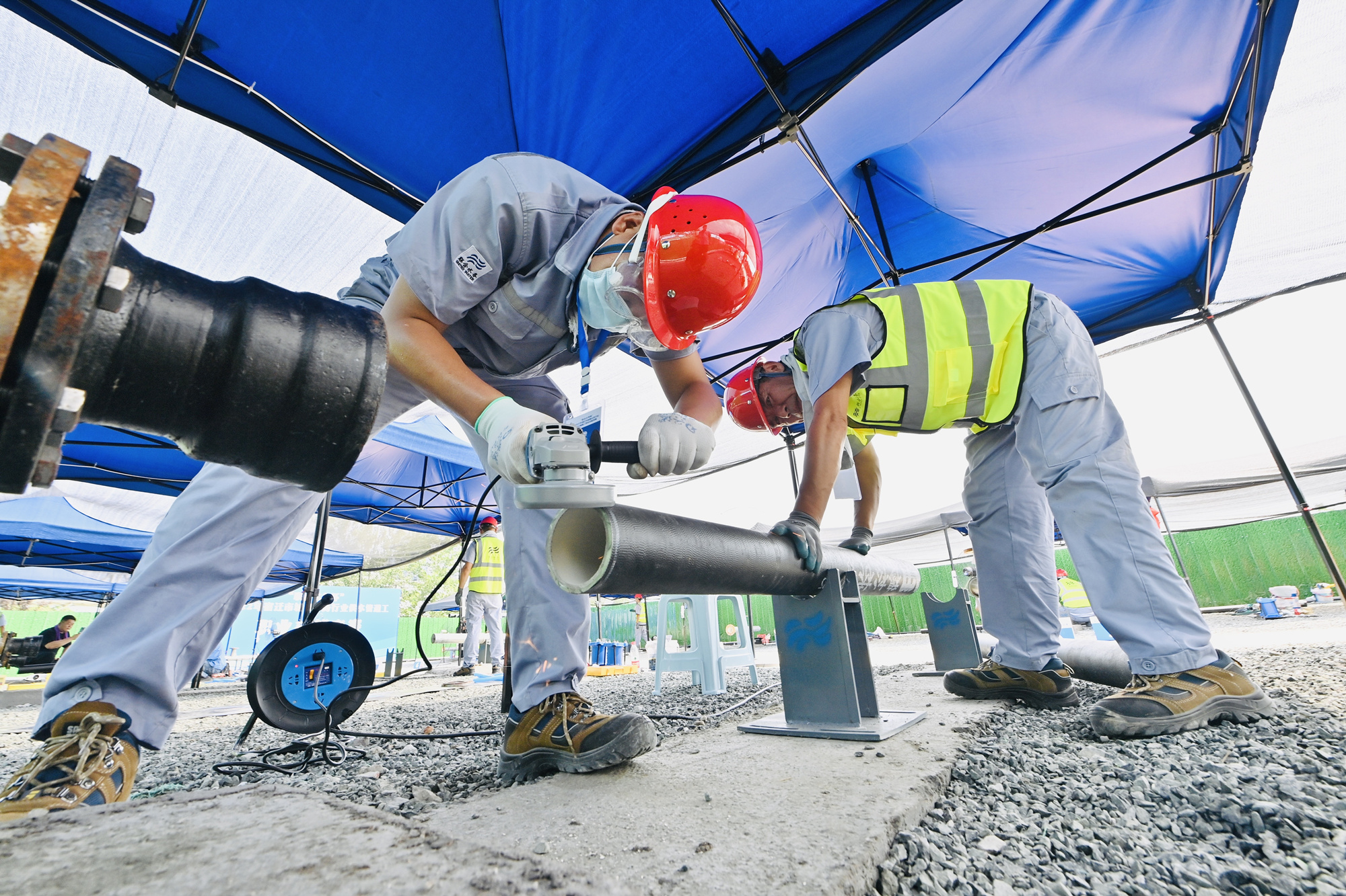 圖:選手現(xiàn)場打磨管道