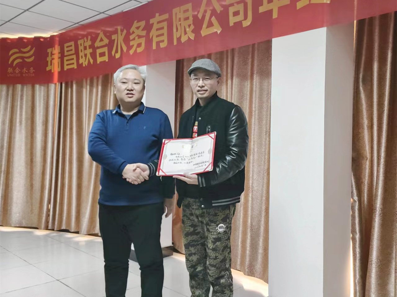 圖:頒發榮譽證書 陳樵總與楊麗霞總作會議致辭,兩位領導對瑞昌公司的整體業績表現給予了肯定,并提出今后公司發展思路的相關建議。高級副總裁羅斌總進行了會議總結,羅總從公司的安全生產、達標排放、企業宣傳等方向提出了要求,同時對2023年的發展做出展望。 開拓進取、繼往開來。2023年瑞昌公司將在聯合水務的帶領下吹響實干的號角,正道遠行。 |