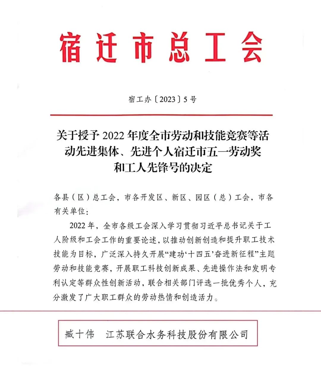 | 喜報!這些聯合水務人榮獲宿遷市“五一勞動獎章”和“五一創新能手”榮譽稱號! | ||