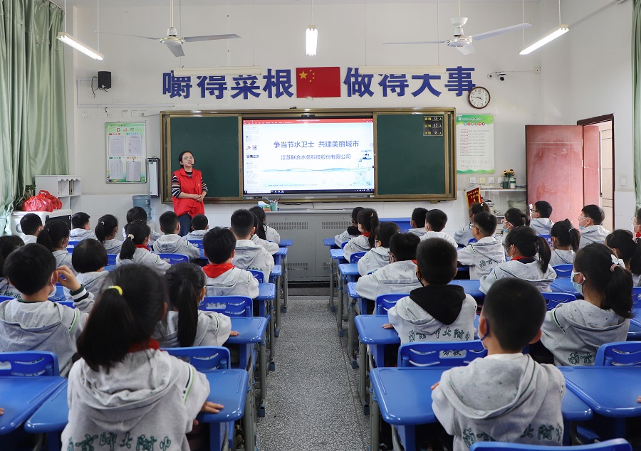 在南京師范大學附屬小學宿遷分校,同學們迎來了一節特殊的班會課。聯合水務走進校園,開展了以“爭當節水衛士,共建美麗城市”為主題的節水宣傳活動。課堂上,公司節水宣傳員向同學們講解了自來水的起源與制水工藝,分享生活節水小妙招,互動問答的方式得到了同學們的積極響應。活動最后,工作人員為每個孩子遞上了文具禮包和節水宣傳手冊,孩子們拿到禮物后喜悅之情溢于言表,紛紛表示要做一個知水、懂水、惜水、愛水的環!靶鹗俊。