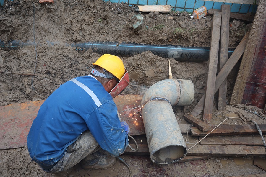 午夜突如其來的大雨嚴重影響了聯合水務荊州公司廠區改造工期的進度,荊州公司生產部全員積極響應總經理鄭彬的緊急號召,精準、快速地加入到搶修隊伍之中。 生產部到達搶修現場后發現,搶修作業遠比想象中復雜、困難。 6月梅雨期降水時大時小,連綿不斷,導致廠區面臨大量的泥土濕軟、雨水積洼等一系列問題,問題有多大,挑戰就有多大。 身處這般逆境中,面對如此惡劣天氣,生產部全員工團結協作,在生產總監廖智勇科學明智的調度下,完成了管道對接、廠區整改和濕軟泥土替換填充等艱巨工作。