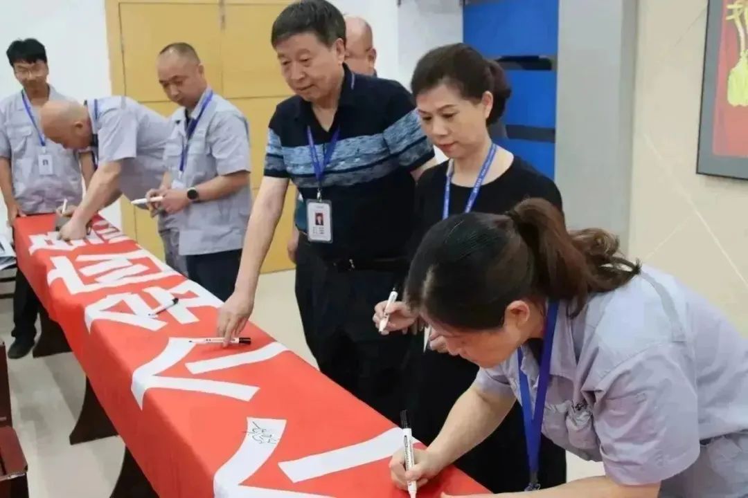 6月1日,在聯合水務咸寧區域總經理陶瑛統一部署下,聯合水務咸寧區域6家項目公司,近50名中高層管理人員及安全員在公司三樓會議室集中參加了“安全生產月”啟動儀式。啟動儀式由聯合水務咸寧區域安全主管顏煦主持,通過“安全事故案例分析”、“安全生產警示片”、“全體人員安全宣誓”、“安全主題橫幅承諾簽字”等形式,發揮領導帶頭學、部門集中學、全員自動學模式,提升全體員工安全事故預警意識,了解以案明責、以案為戒的重要性,并結合各項目公司現狀,分析了當下存在的主要安全風險,明確防范措施。 以案為鑒,“強”根基