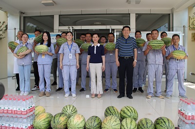 關愛職工,夏送清涼。為切實做好公司安全生產和職工防暑降溫工作,全面維護職工的健康權益,7月26日至27日,聯合水務咸寧區域總經理陶瑛、咸寧聯合水務有限公司總經理毛雄輝、咸寧聯合市政工程有限公司總經理王冬青為公司一線職工送去西瓜、礦泉水等降溫物品,向高溫下堅守崗位的一線職工表示慰問。