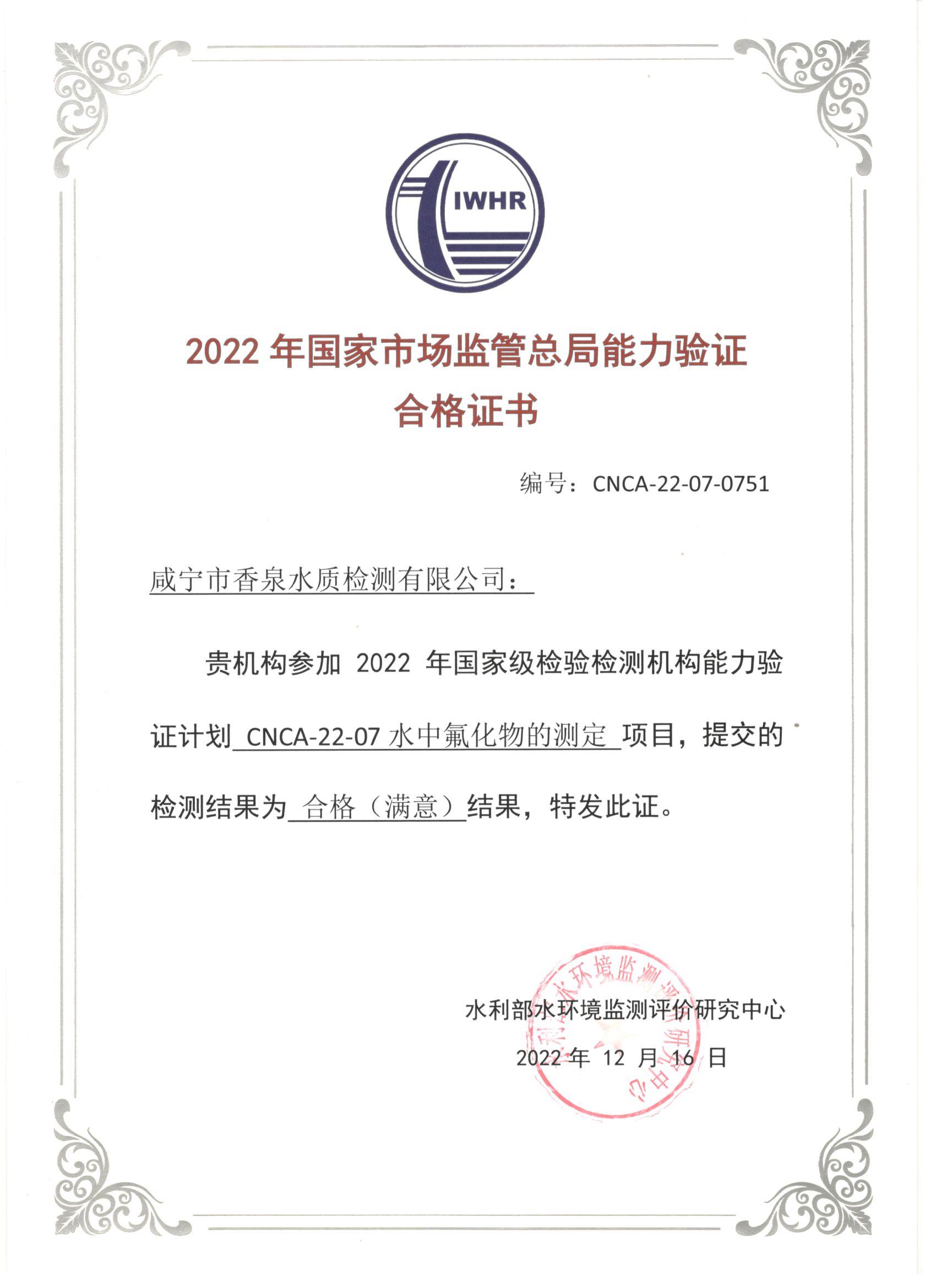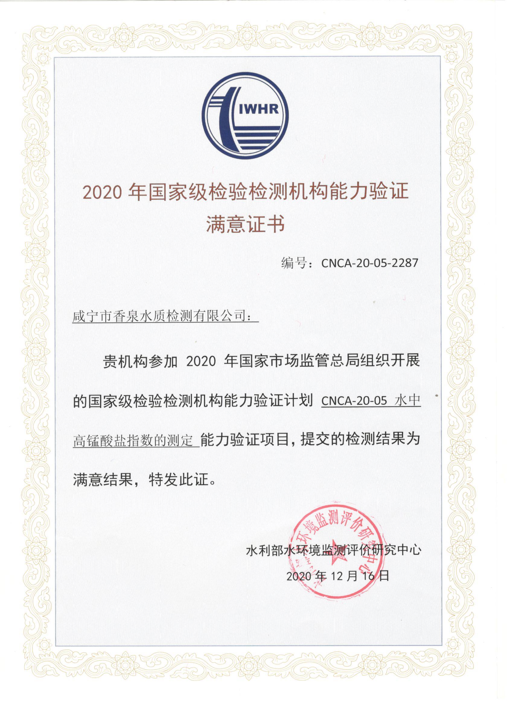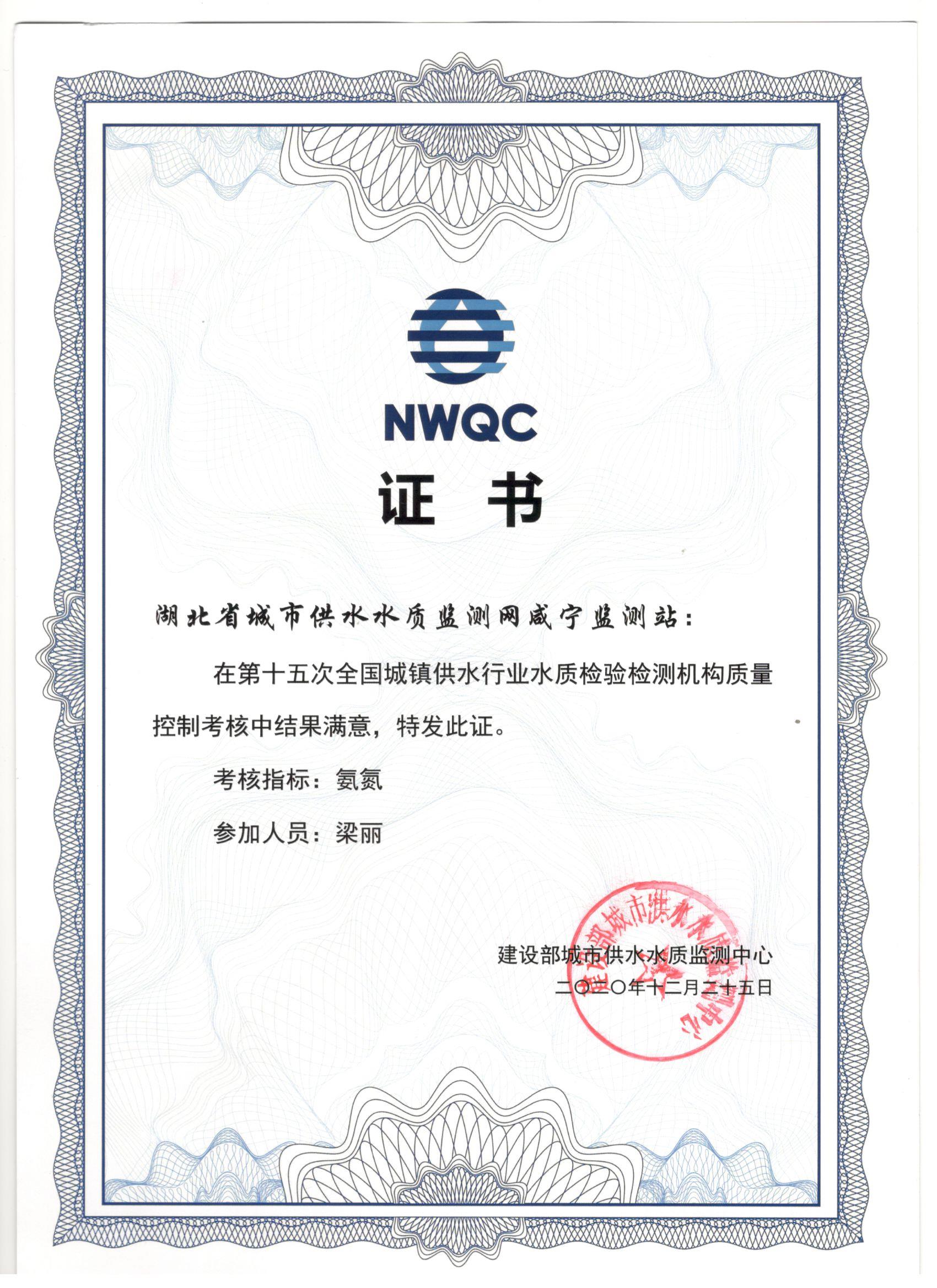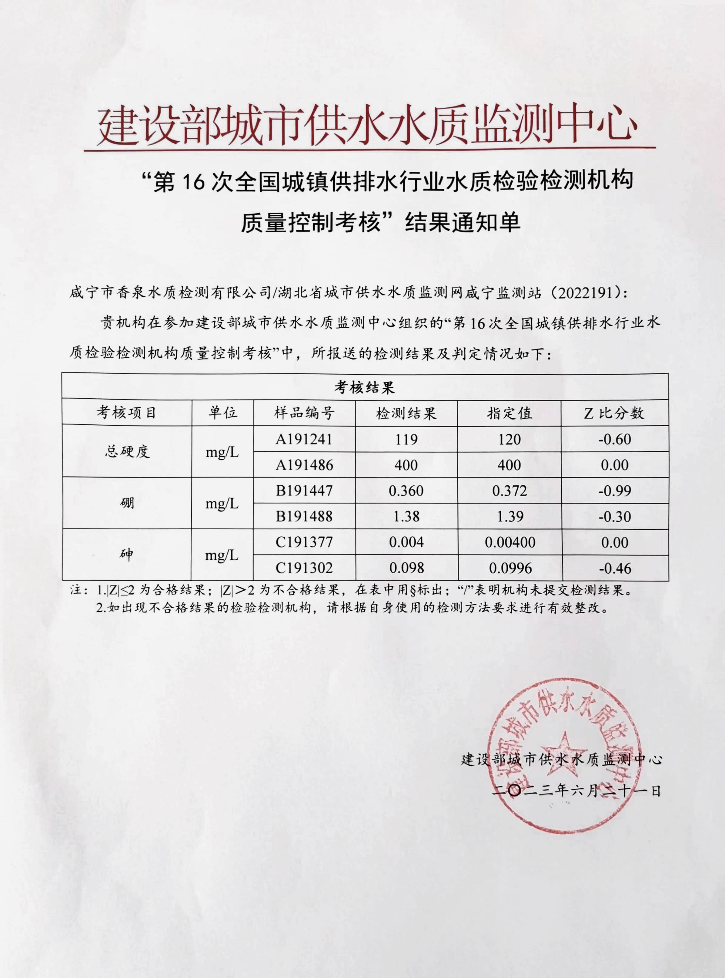 | 聯(lián)合水務咸寧市香泉水質檢測有限公司參加第16次全國城鎮(zhèn)供排水檢測機構質控考核再獲佳績 | ||