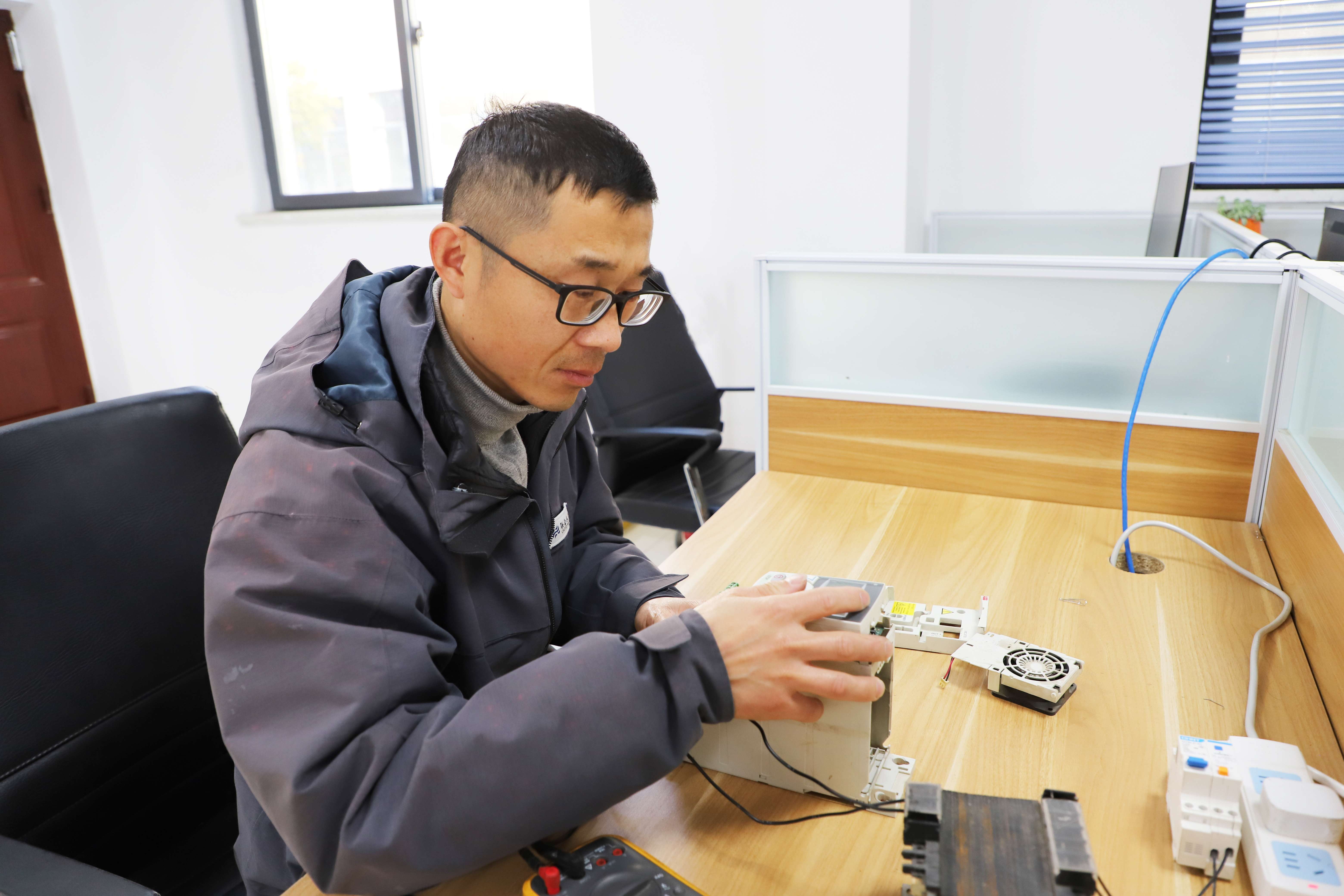 01可以說,哪里的設備有故障,哪里就有你們,這些年,您經歷過大大小小搶修,哪次搶修經歷令您印象深刻? 張曉超:設備維修工作是水廠正常運轉的關鍵之一,在面臨故障和緊急情況時,最重要的就是能夠迅速響應并解決問題,我參加過許多次搶修,其中讓我印象最深刻的是2014年維修三棵樹泵站4號變頻器。這是我第一次維修變頻器,當時宿遷能維修進口變頻器的廠家寥寥無幾,故障發生后只能靠我們自己想辦法維修,我和同事們連夜查閱資料、焊接電路板、自制防短路檢測設備,經過多個日夜的努力,最后成功完成了維修任務。這次經歷讓我深刻地認識到團隊合作的力量,以及在困難面前不斷探索和嘗試的重要性。
