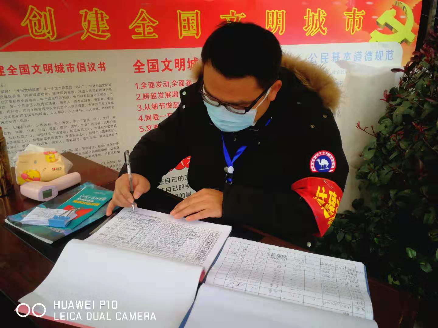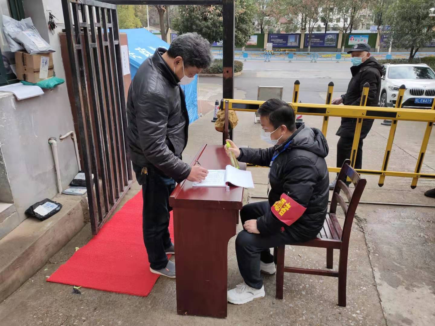 圖1:志愿者陳治坤正在登記外出人員信息 阻擊疫情,逆行守護。志愿者陳治坤是咸寧聯合市政公司的造價總監,在本次志愿者的召集中,他積極參與,主動擔當,在第一時間向公司提出要參與疫情一線防控工作。他值守的銀泉社區綠洲灣小區,目前入住約200戶,根據《咸安區新型冠狀病毒感染的肺炎防控指揮部通告》(第12號令),每戶家庭每兩天可指派1名身體強壯成員上街采購生活物資,其它人員除生病就醫、上班外,不得外出。“疫情期間,大部分人都能遵守規定,但是還是有小部分居民不理解。今天一位外出買菜的阿姨,昨天已經登記其外出采購了物品,按規定今天不得外出,但她還是吵著要出去采購,經過我的耐心勸導,成功勸返”陳治坤說。