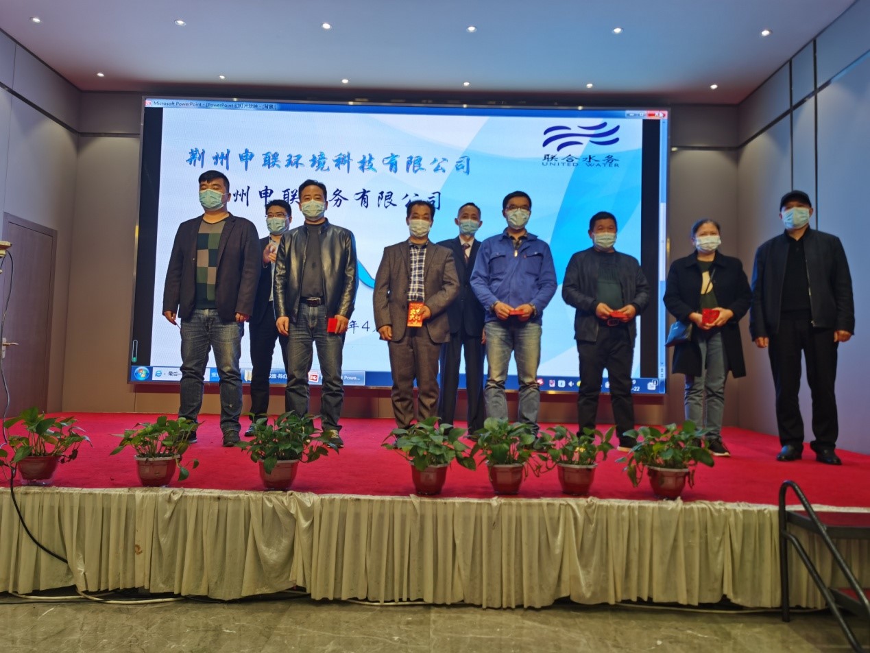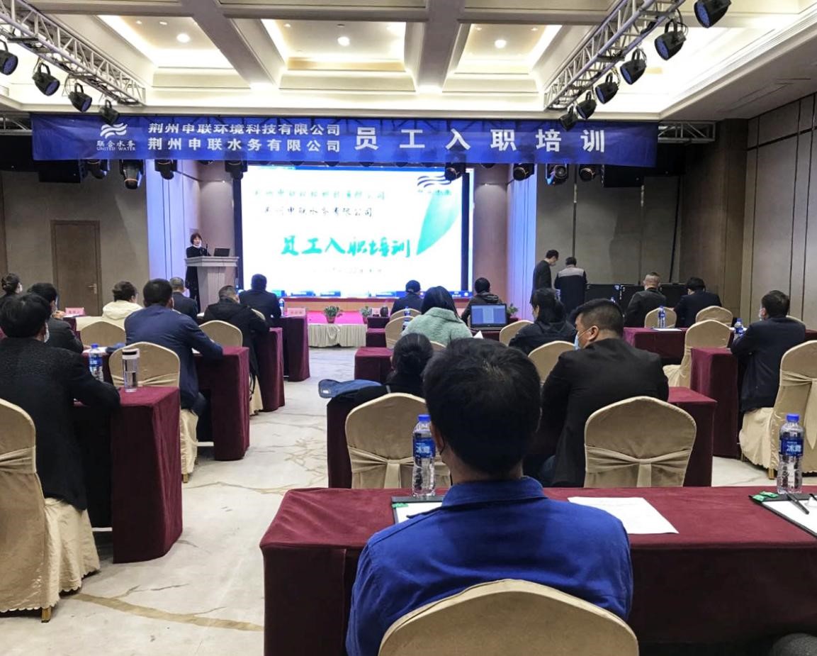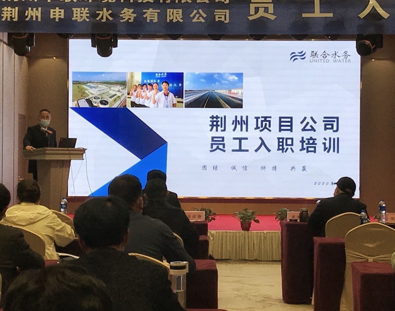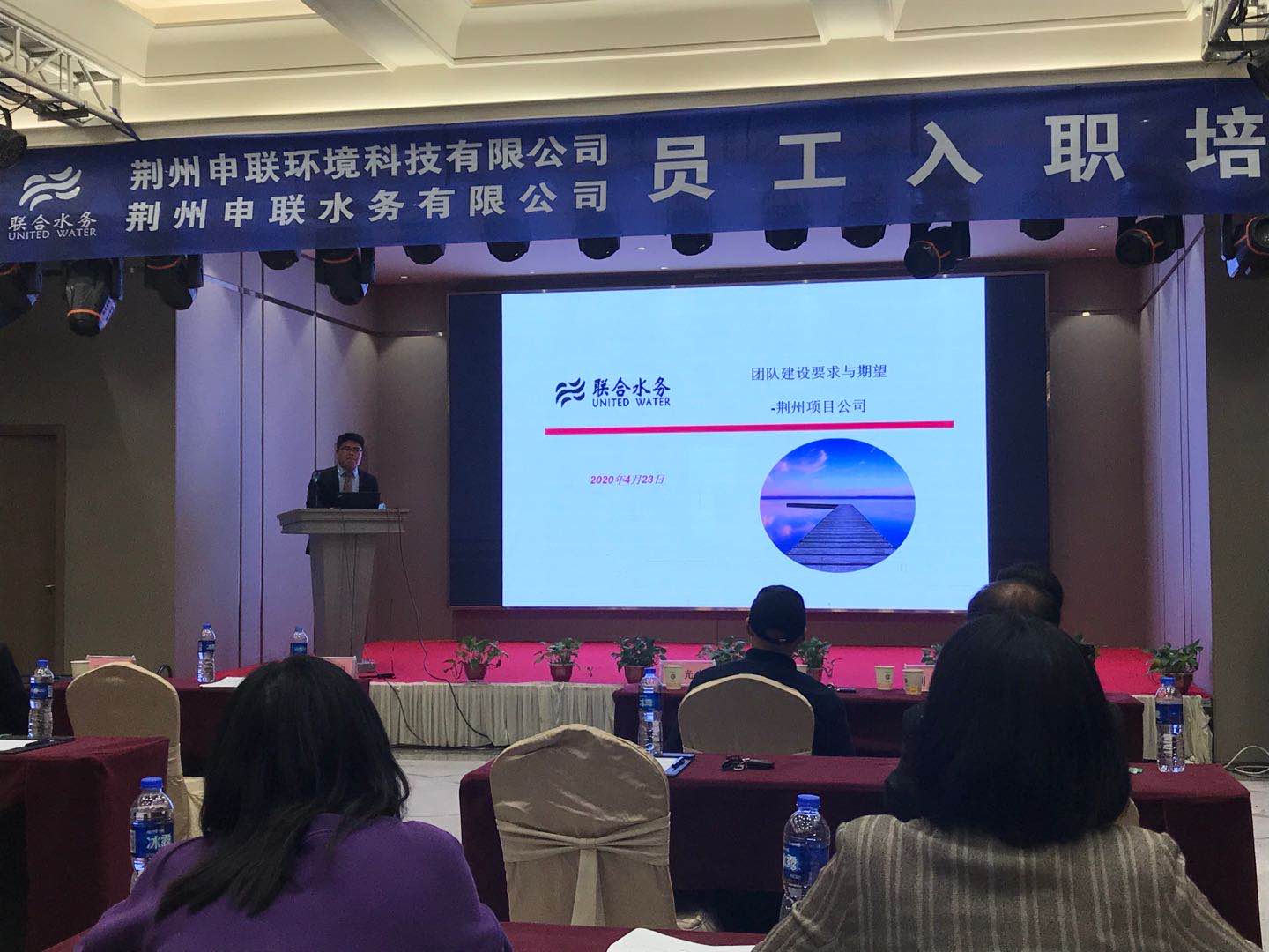 2020年1月17日聯(lián)合水務(wù)集團(tuán)公司正式簽約荊州經(jīng)開區(qū),取得了荊州經(jīng)濟(jì)技術(shù)開發(fā)區(qū)的工業(yè)污水項目特許經(jīng)營權(quán)及生活污水項目的25年特許經(jīng)營權(quán),至此,荊州申聯(lián)環(huán)境科技有限公司、荊州申聯(lián)水務(wù)有限公司(以下簡稱“荊州申聯(lián)公司”)正式成立。 為幫助全體員工全面了解集團(tuán)概況及企業(yè)文化,營造奮發(fā)向上、團(tuán)結(jié)協(xié)作的工作氛圍,幫助全體員工更好的適應(yīng)新機制、新環(huán)境、新崗位,4月22日至23日在荊州市盟達(dá)酒店二樓多功能會議廳開展了荊州申聯(lián)公司員工入職培訓(xùn)。會議由咸寧聯(lián)合水務(wù)有限公司人力資源部經(jīng)理陳紅主持,荊州申聯(lián)公司總經(jīng)理許應(yīng)濤,咸寧聯(lián)合水務(wù)有限公司人事行政副總經(jīng)理張偉華、咸寧思源水務(wù)有限公司常務(wù)副總經(jīng)理施政云、宿遷耿車污水處理廠廠長趙祥祥等聯(lián)合水務(wù)集團(tuán)旗下多個項目公司高管及荊州申聯(lián)公司各部門員工共計40余人參加了培訓(xùn)。