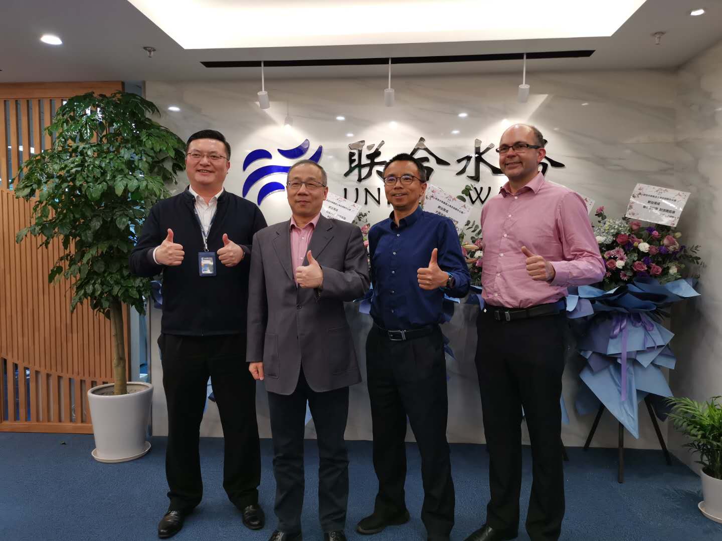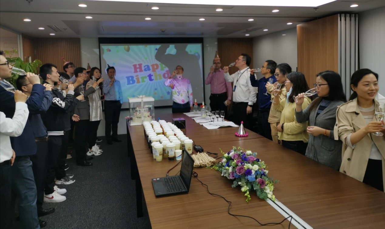 最是一年春好處,絶勝花柳滿門廳。伴著和煦的春風,趁著“五一”的來臨,聯合水務集團總部新辦公室落成慶典隆重舉行,同期舉辦2020年一季度總部員工集體生日慶祝活動。 2020年4月29日下午,活動在聯合水務集團上海總部新增新裝的南豐城16樓辦公室舉行。聯合水務集團董事長兼總裁俞偉景先生、聯合水務集團高級副總裁劉猛先生、聯合水務集團高級副總裁陳樵先生、聯合水務集團高級副總裁兼CFO James Beeson先生、上海總部全體常駐員工、孟加拉項目公司部分員工共同參與了此次慶典暨生日慶祝活動。
