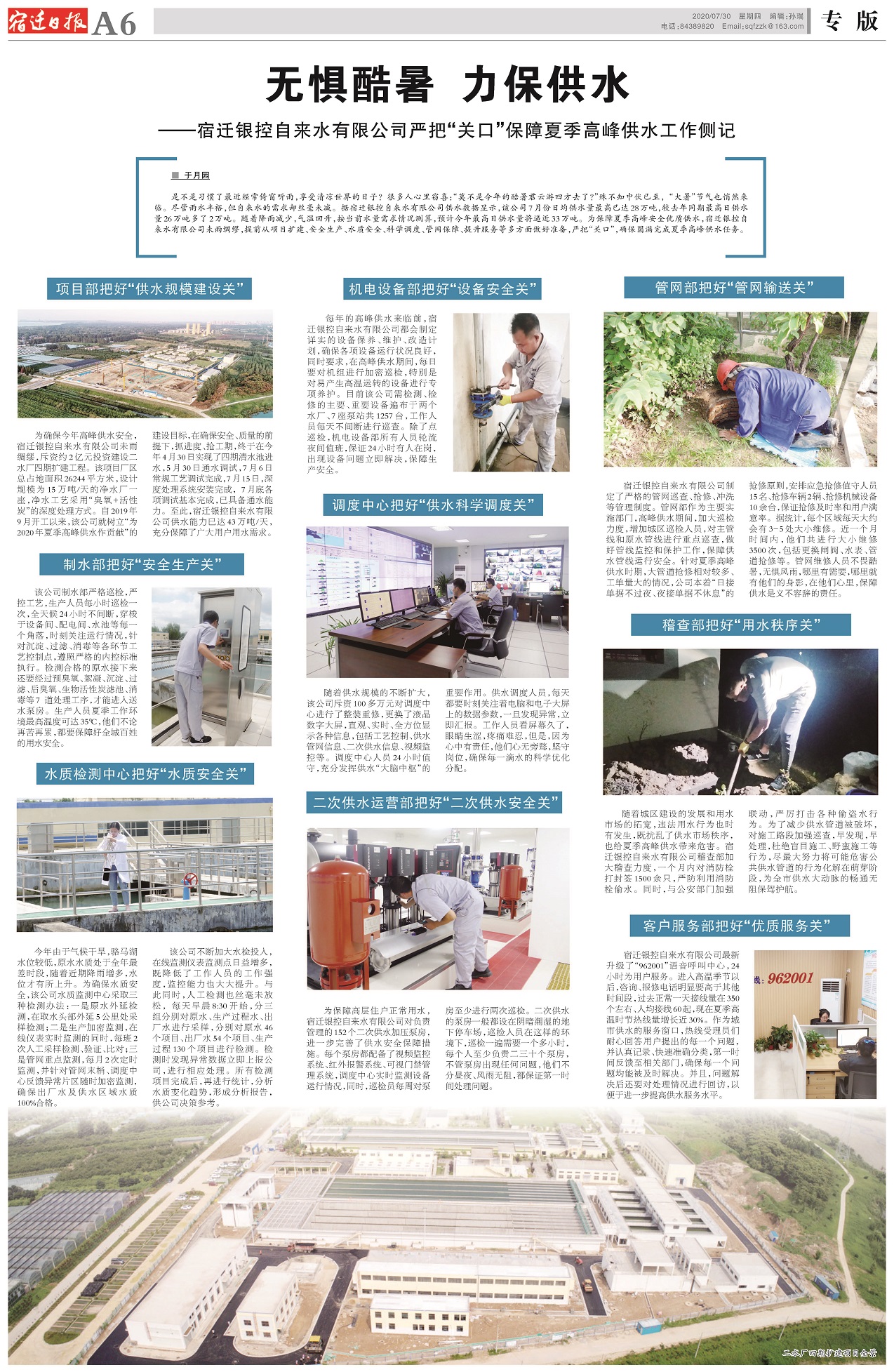 | 未雨綢繆無懼酷暑 默默堅守力保供水——聯合水務宿遷銀控自來水有限公司嚴把“關口”保障夏季高峰供水工作側記 | ||