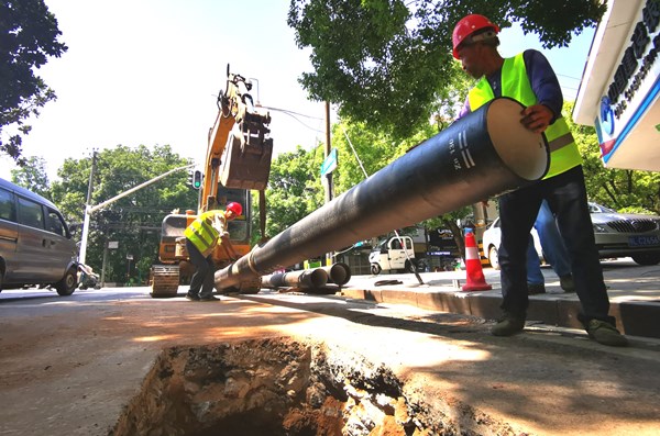 管網(wǎng)改造 8月7日下午,在市區(qū)潭惠路街道,咸寧聯(lián)合水務(wù)工程部施工人員正在赤日炎炎下進(jìn)行供水主管的鋪設(shè)工作。由于該路段交通繁忙,人流量和車流量較大,且地下管線密布交錯(cuò)復(fù)雜,為管網(wǎng)改造工作帶來巨大難度,但施工人員不畏困難、不懼酷暑,以滿身汗水加快管網(wǎng)改造速度。 近年來,咸寧聯(lián)合水務(wù)結(jié)合主城區(qū)用戶發(fā)展需求,按照“輕重緩急、分類梳理”的原則,制定了老舊供水管網(wǎng)改造計(jì)劃,城區(qū)老舊供水管網(wǎng)的更新改造工作逐步推進(jìn)。今年預(yù)計(jì)投入800萬元對市區(qū)十余條道路的老舊供水管網(wǎng)進(jìn)行升級(jí)改造。目前已完成月亮灣路和潭惠路老舊管網(wǎng)的改造,極大改善了居民用水質(zhì)量,提升了群眾幸福感。 高溫保供水,咸寧聯(lián)合水務(wù)供水人日夜奮戰(zhàn),全力以赴。他們或頭頂烈日,抗戰(zhàn)高溫酷暑;或置身泥水,忍受蚊蟲叮咬;或挑燈夜戰(zhàn),不懼艱苦疲倦。默默用汗水和奉獻(xiàn)描繪著聯(lián)合水務(wù)人城市保供水的精彩畫卷。 |