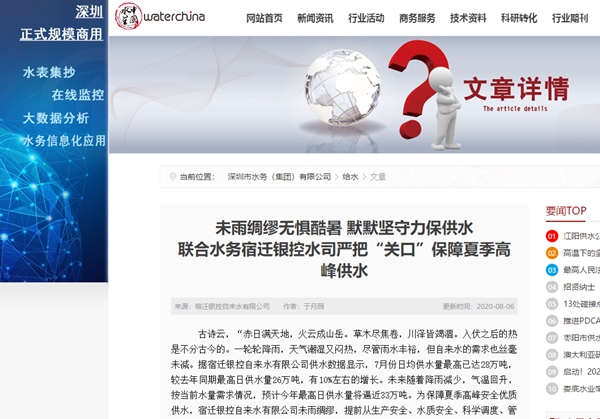 市電視臺綜合頻道《走起,新生活》版塊播出公司高峰供水宣傳片,宿遷手機臺同步播放 投稿權威行業媒體,提高宣傳影響力。保障夏季高峰供水是每一家供水企業的重要任務,將公司有力舉措撰文積極向“中國水星網”、《供水節水報》等權威行業媒體投稿,即展示了公司實力與社會責任感,也擴大了公司影響力,提升行業地位,還加強了行業間的交流與學習。