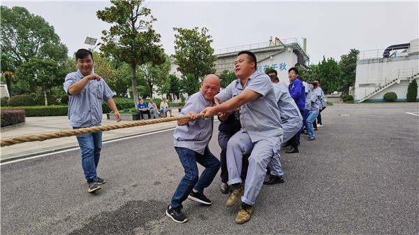 為迎接中秋佳節、慶祝新中國成立71周年,弘揚聯合水務集團“團結、誠信、拼搏、共贏”的企業文化精神,增強員工之間的團隊合作、豐富員工業余文體生活、營造濃厚融洽的工作氛圍,激發員工愛國愛廠愛崗情懷。9月24日下午,聯合水務荊州申聯公司組織全體員工開展“迎中秋、慶國慶”員工趣味運動會。 本次活動在行政部的精心策劃下如期舉行,活動當天,天朗氣清,惠風和暢。來自全公司各部門共52名參賽選手,早早聚集在辦公大樓前,參加拔河、背夾球、搶凳子三個比賽項目的角逐。因荊州申聯公司剛成立不久,各部門為了盡快梳理清楚各項具體業務,助力公司在高質量發展道路上行穩致遠,員工們一直都是堅守崗位、埋頭苦干。此次難得有機會員工們齊聚一堂參加活動,大家談笑風生、氣氛熱烈。 14:00在大家的歡呼聲中比賽正式開始。第一個項目是拔河團體賽:根據男、女員工比例平均分配為肖鵬隊、朱孝峰隊,三局兩勝。參賽的巾幗須眉們斗志昂揚、奮力爭冠,拔得人酣暢淋漓,看的人熱情澎湃。最終肖鵬隊在徐正舟、胡君、謝寶義等猛男的力量優勢助力下以2:0的比分取得壓倒性勝利。