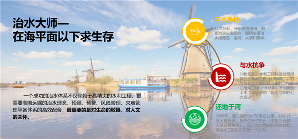 問水篇 作為走遍山南海北的環保人,看慣祖國眾多的江河湖川溪,也許未曾深刻思考過這亙古的自然之水為何物。從山麓汩汩而泄,在平原波光泛濫,在浪濤中騰騰裊裊,在歷史中鑄成永恒,這就是她的含義: 既是生命過程,又是精神傳承。她包含降雨(雪)、蒸發、下滲及地質構造等過程,也經歷自然老化、污染填埋、功能退化等周期;她是動物、植物、微生物等生命形式的有機結合體,也是蘊含文化、歷史、休閑、審美、船運等功能的載體。她時而柔順,滋養世界,潤物無聲;也時而狂躁,暴雨肆虐,洪水橫流。 正是她這些復雜的特性,決定了我們不能用單純的眼光看待水環境問題,水多(洪澇問題)、水少(干旱問題)、水臟(水污染問題)、水功能喪失,其本質上是水資源時空分布不均和水陸發展不協調的問題。從根本上解決水環境問題,應從水中延伸到陸地,從單線治理延伸到時空綜合整治,從工程建設延伸到人文關懷,從環境修復延伸到社會經濟的統籌發展。 理水篇 縱觀國內外水環境治理發展歷程,無一不是從片面到系統,從硬質到柔性,從工程建設到功能提升的蛻變。 治水大師—荷蘭 荷蘭作為世界最大的河口三角洲之一,歐洲主要河流如萊茵河、繆斯河、斯海爾德河等在其境內匯聚,全境無山,地勢低洼,60%國土面積低于海平面,直面北海風暴潮的沖擊。 特殊的地理水文環境造就了荷蘭特殊的治水歷史,12世紀起填海造陸,開始了長達7個世紀的與水爭地的浩大工程。由于飽受水患影響,20世紀起,荷蘭進入水利工程快速發展期,在此期間誕生了號稱“現代世界第七大奇跡”的荷蘭三角洲工程及南海工程。聲勢浩大的與水抗爭,并沒有從真正意義上解決荷蘭的水患問題,特別是1995年的洪災,荷蘭受災面積170平方公里,25萬人口遷徙,這次將荷蘭防洪治水工程引向了另一個方向-還地于河(Room for the River),開啟了人水和諧的新篇章。