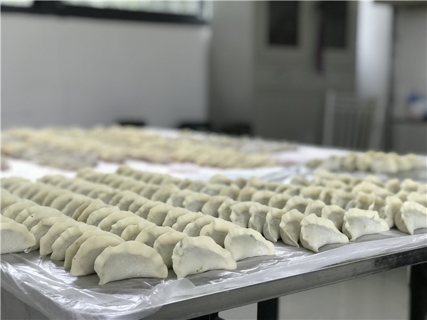 大家在“厲行節(jié)約、反對浪費(fèi)”的大紅橫幅印照下,你追我趕、相互促進(jìn),充分發(fā)揚(yáng)了聯(lián)合水務(wù)“團(tuán)結(jié)”就是力量的企業(yè)文化精神,體現(xiàn)了人多效率高、人心齊泰山移的特點(diǎn)。不到一個小時,一個個有棱有形、元寶模樣的餃子,一排排、一行行,錯落有致、排列整齊地出現(xiàn)在我們眼前,就像一個個紀(jì)律嚴(yán)明、軍容赫赫的士兵即將奔赴戰(zhàn)場,大家彼此相視露出勝利般的欣慰笑容。