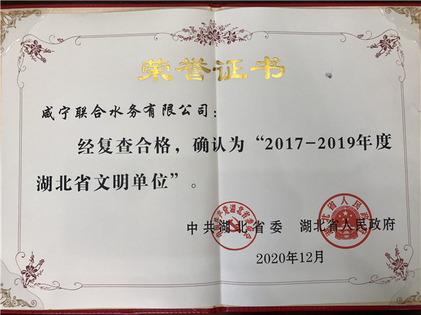 日前,中共湖北省委、湖北省人民政府印發(fā)《關于命名表彰2017-2019年度湖北省文明城市、文明村鎮(zhèn)、文明單位、文明家庭、文明單位(校園)的決定》,咸寧聯(lián)合水務再度獲得了2017-2019年度“湖北省文明單位”榮譽稱號。能夠再續(xù)此項榮耀稱號,是中共湖北省委員會和社會各界對咸寧聯(lián)合水務長期以來堅持精神文明建設、努力提升文明素養(yǎng)、持續(xù)深化文明創(chuàng)建活動的充分肯定。
