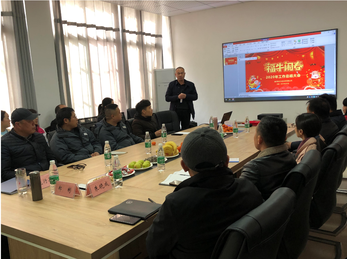 14點,我司“福牛鬧春”2020年工作總結大會在會議室拉開帷幕。總經理鄭彬、總經理助理朱曉臣、副總經理姚行兵、廠長張熊等領導及全體員工參加會議,鄒玉珍經理全程主持。會議由鄭總致辭并做年終工作總結,總結報告由“業績完成情況,存在的問題和解決措施,新年工作重點”三個部分組成。