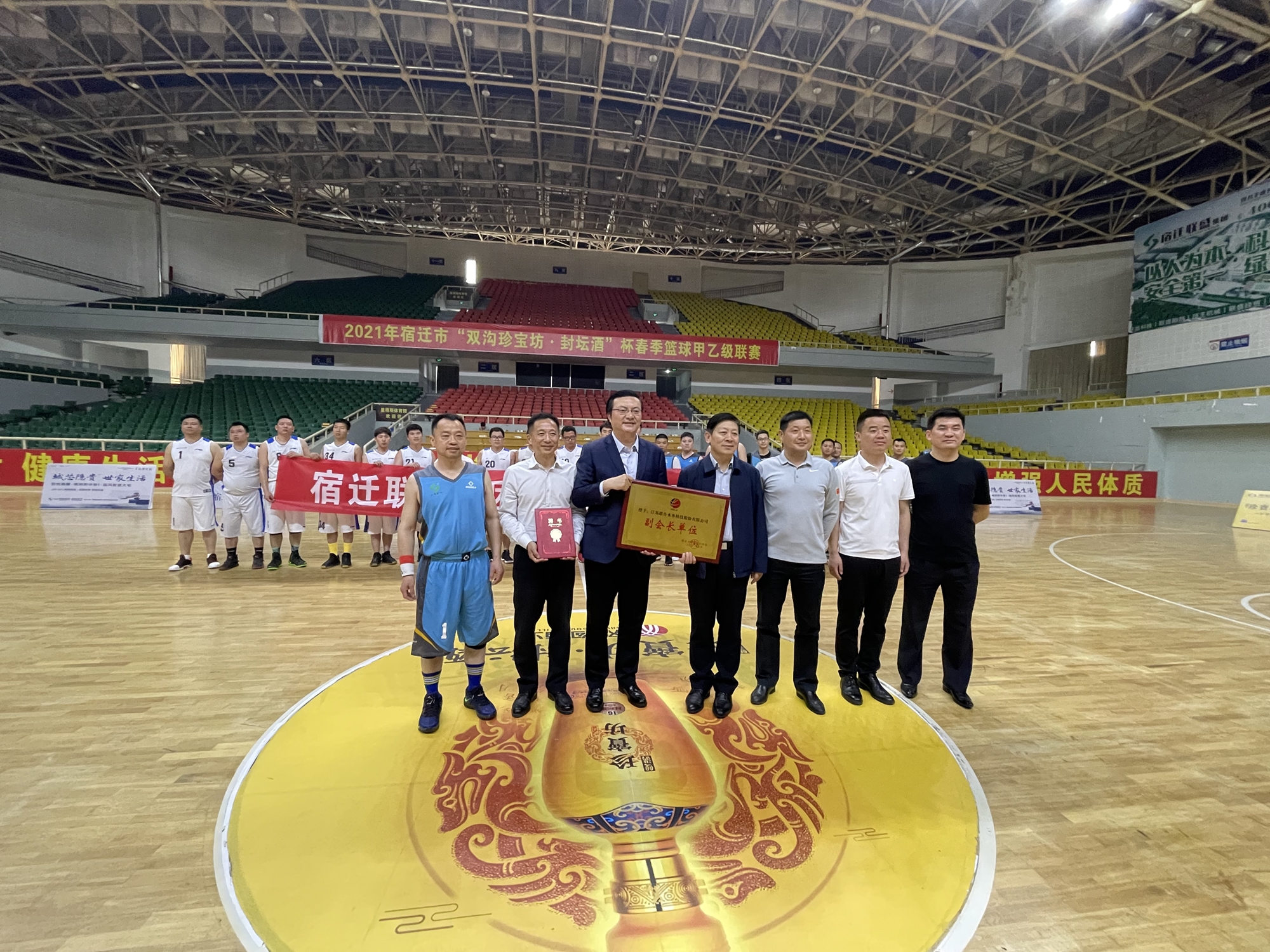為豐富員工業(yè)余文化生活,增強(qiáng)團(tuán)隊(duì)協(xié)作精神和公司凝聚力,促進(jìn)對外交流,5月19日下午,江蘇聯(lián)合水務(wù)科技股份有限公司與宿遷聯(lián)盛集團(tuán)籃球友誼賽暨江蘇聯(lián)合水務(wù)科技股份有限公司籃協(xié)副主席單位授牌儀式在宿遷市文體中心籃球館舉行。 宿遷市副市長章其波、江蘇聯(lián)合水務(wù)科技股份有限公司高級副總裁劉猛、聯(lián)盛集團(tuán)董事長繆克湯,江蘇聯(lián)合水務(wù)科技股份有限公司宿遷區(qū)域總經(jīng)理曾真等親自到場。當(dāng)章其波副市長將“宿遷市籃球運(yùn)動協(xié)會副主席”單位的榮譽(yù)牌交到劉猛副總裁手里時(shí),全場響起了熱烈掌聲。 市領(lǐng)導(dǎo)、籃協(xié)領(lǐng)導(dǎo)及企業(yè)領(lǐng)導(dǎo)到場助陣,極大鼓舞了雙方隊(duì)員的士氣。簡單的熱身后,一聲哨響,比賽正式開始。比賽共分四節(jié),每節(jié)先得21分為勝方。 身著藍(lán)色隊(duì)服的聯(lián)盛集團(tuán)隊(duì)員開局出彩,第一回合的進(jìn)攻就配合默契,隊(duì)友之間不停的傳接球,終于外線隊(duì)員跑出空位,來了個(gè)跳投三分,十分精彩。緊接著屢屢殺進(jìn)我方內(nèi)線投籃得分,一路領(lǐng)先。面對聯(lián)盛集團(tuán)擁有兩名CBA經(jīng)歷的球員,身著白色隊(duì)服的江蘇聯(lián)合水務(wù)隊(duì)也不甘示弱,中鋒田晶晶籃下接到隊(duì)友妙傳,一打二,成功得分,也為我方隊(duì)員增長了氣勢,我方隊(duì)員在防守反擊,快攻配合方面也頗具成效,隨后連連得分。比賽場上,雙方隊(duì)員可謂是球逢對手、角逐激烈,整個(gè)比賽過程吸人眼球、扣人心弦。聯(lián)盛集團(tuán)隊(duì)員們配合默契,技術(shù)熟練;我方籃球隊(duì)員們也毫不畏懼,勇往直前,打團(tuán)隊(duì)配合。隊(duì)員們個(gè)個(gè)發(fā)揮出色,關(guān)鍵時(shí)刻表現(xiàn)十分頑強(qiáng),三分球、中遠(yuǎn)距離投籃、籃板球、快攻妙傳等出色球技,贏得啦啦隊(duì)陣陣喝彩。比賽最終雙方二比二,打成平局。