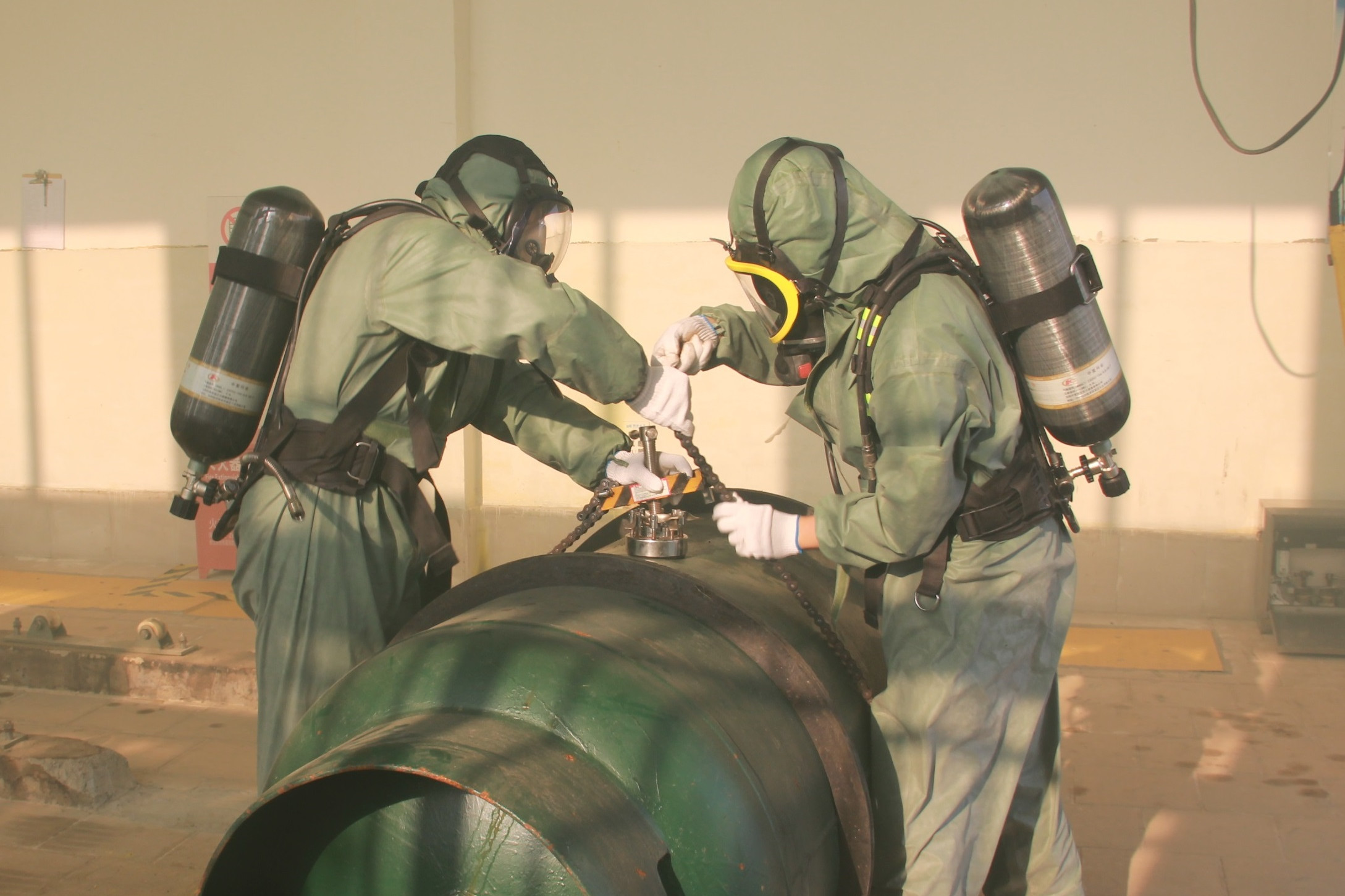 安全生產無小事,安全責任大于天。為深入強化供水生產安全意識,不斷提升生產廠站安全指數,加強員工隊伍應對突發生產安全事故處置和救援能力,提高搶險效率,11月18日下午,咸寧聯合水務有限公司生產部門在王英水廠開展生產安全事故應急救援預案演練。聯合水務咸寧區域總經理陶瑛臨場指揮,公司全體管委會成員及中層管理職工進行現場觀摩。 唯安全之道,篤行之。安全是企業生產之根本,是企業穩步發展之核心要素。唯有樹牢安全發展理念,充分認識到安全生產工作的重要性,將安全生產工作落到實處,壓實防控責任,時刻保持如履薄冰的警惕狀態,才能筑牢安全生產防線。唯有如此,企業才能在波濤洶涌的大海中順利航行。 在演練的第一個環節,工作人員事先用發煙道具模擬氯庫的液氯鋼瓶發生氯氣泄漏場景。氯氣泄漏擴散觸發自動報警器,廠區警鈴一響,值班室人員立即佩戴導管式防毒面具,打開庫房進入庫房觀察情況,確認為氯氣泄漏后,立即向部門經理施志雄報告氯庫發生泄漏事故。施經理當即啟動《生產安全事故應急預案》,安排事故應急小組立即前往現場進行搶險。從警鈴響起至漏濾事故清除,全過程總用時為5分06秒。發生突發事故,早一秒處置,就能早一秒轉危為安。此次液氯泄漏事故演練較好的反映了廠區工作人員的應急處置能力,廠區工作人員表示,將繼續強化應急處置能力,以便在日后真正發生事故時能在第一時間消除險情。