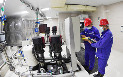 雖身處寒冬,但清洗工作完畢后,工作人員卻早已大汗淋漓。最后,設(shè)備維護(hù)工程師對控制柜、水泵等設(shè)備逐一進(jìn)行檢測調(diào)整和潤滑保養(yǎng),確保二供設(shè)施安全運(yùn)行。