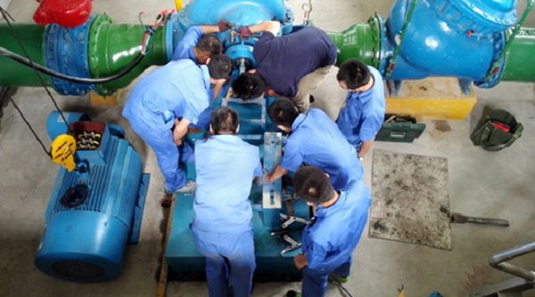 (圖3:機電維修人員對送水泵進行整體檢修)