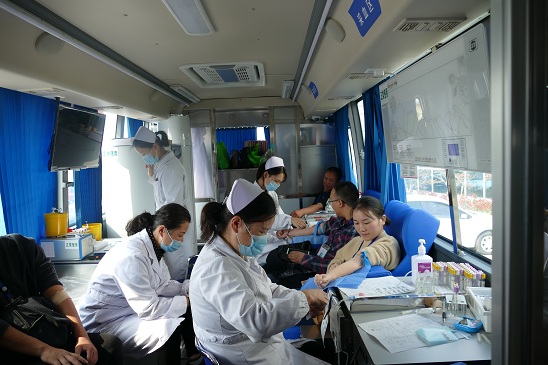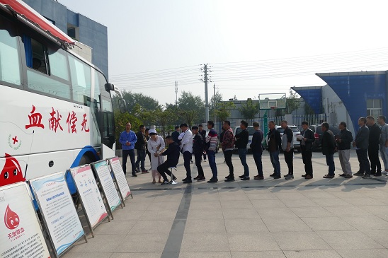 (圖1:獻(xiàn)血前溫馨合影) 10月23日上午,秋陽和煦,溫暖人心。按照事先排定的序列,由路途較遠(yuǎn)的洋河、龍河、皂河三個(gè)區(qū)域供水服務(wù)中心第一批次獻(xiàn)血,工程公司員工為第二批次,下午是二水廠各部門及水檢公司人員獻(xiàn)血時(shí)間。還未到8:30分,三個(gè)中心的同事們便已早早來到了公司第二水廠辦公樓前廣場(chǎng)等候。這一邊血站工作人員對(duì)獻(xiàn)血車設(shè)備儀器接電調(diào)試,另一邊大家已經(jīng)在辦公樓大廳里填表、測(cè)血壓、心率。原本9:00才開始的活動(dòng),因?yàn)榇蠹覠崆楦甙海崆伴_始。填好表,初次體檢合格的同事來到獻(xiàn)血車前自動(dòng)排隊(duì),有序上車進(jìn)行再次體檢及獻(xiàn)血。每個(gè)人笑意盈盈,因?yàn)樾闹杏袗邸=衲甑墨I(xiàn)血活動(dòng),除有特殊原因不能參加外,共計(jì)有,169人報(bào)名,經(jīng)現(xiàn)場(chǎng)測(cè)量血壓、心率及進(jìn)行轉(zhuǎn)氨酶等項(xiàng)目血液初篩,最終符合獻(xiàn)血要求的實(shí)際獻(xiàn)血人數(shù)為79人,共計(jì)獻(xiàn)血量達(dá) 25300ml。